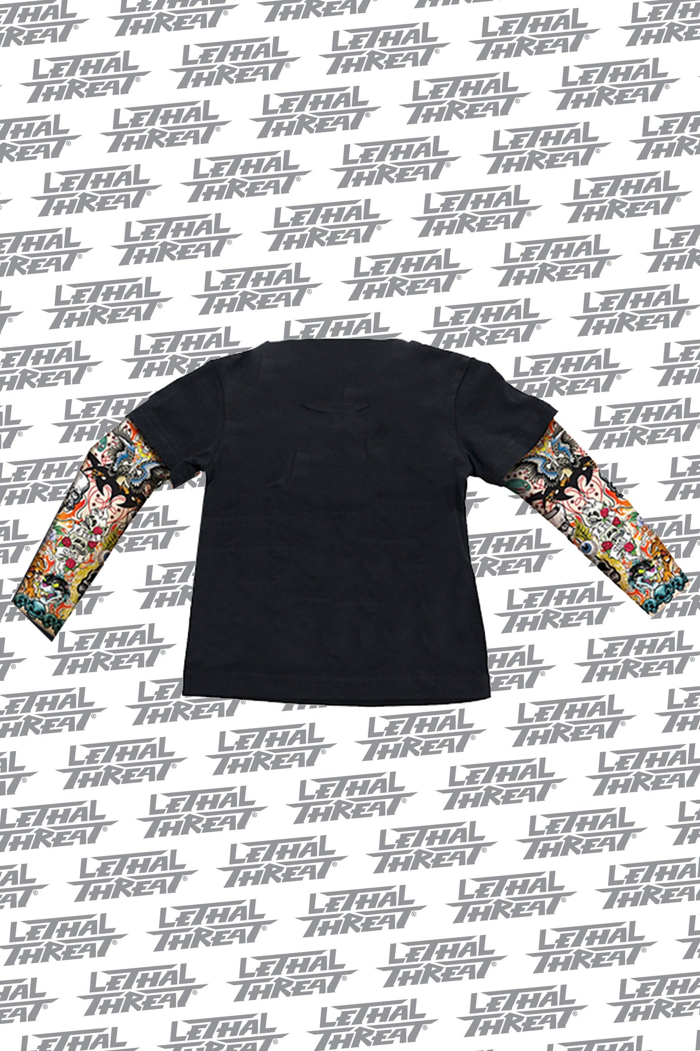 Little rebel at home? It's never too young to want tattoos, this shirt is perfect for the little rebels out there who want to stand out! Born to Ride, says it all. He'll be tearing down the street on two wheels before you know it. Sleeves are are full color with designs boys love from panthers to cartoon skulls. Our two in one Shirt, with attached full color printed sleeves, is the next best thing to a real tattoo sleeve. Cool skull n bones chest print. This kid is going to rock the monkey bars in style!